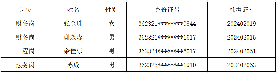 根據(jù)《上饒創(chuàng)新發(fā)展產(chǎn)業(yè)投資集團有限公司公開招聘公告》及相關要求,我司已按相關要求完成了筆試、面試等程序,現(xiàn)將擬錄取名單進行公示,公示期5個工作日。若對公示內(nèi)容有異議,可在公示期內(nèi)反映,反映情況和問題必須實事求是,應簽署或告知真實姓名、工作單位、聯(lián)系方式,對線索不清的匿名信和匿名電話公示期間不予受理,聯(lián)... [更多]